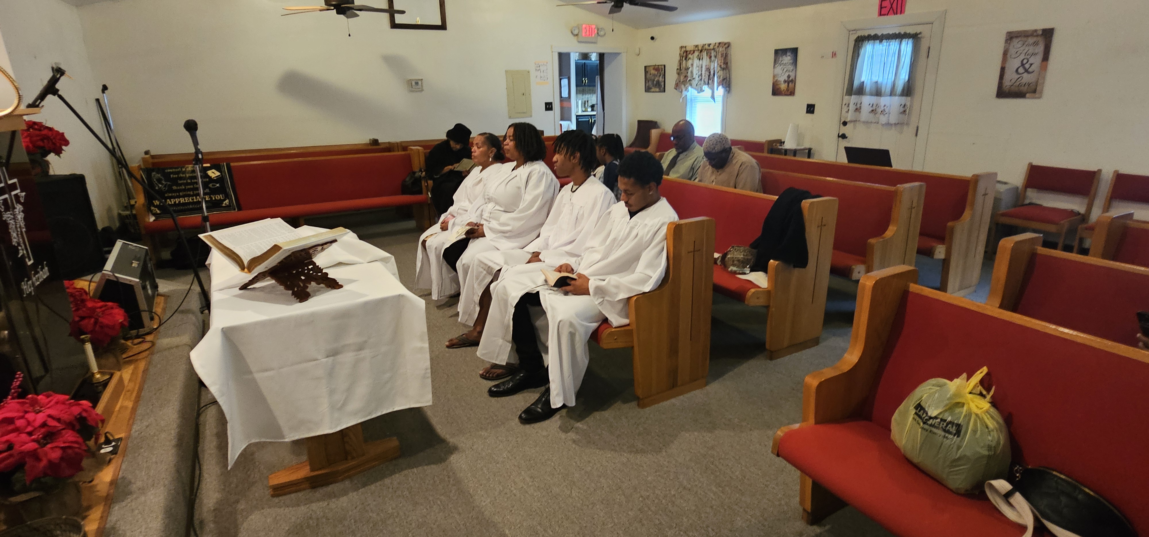 Worship services take place at 10:30 a.m. on the first and third Sundays